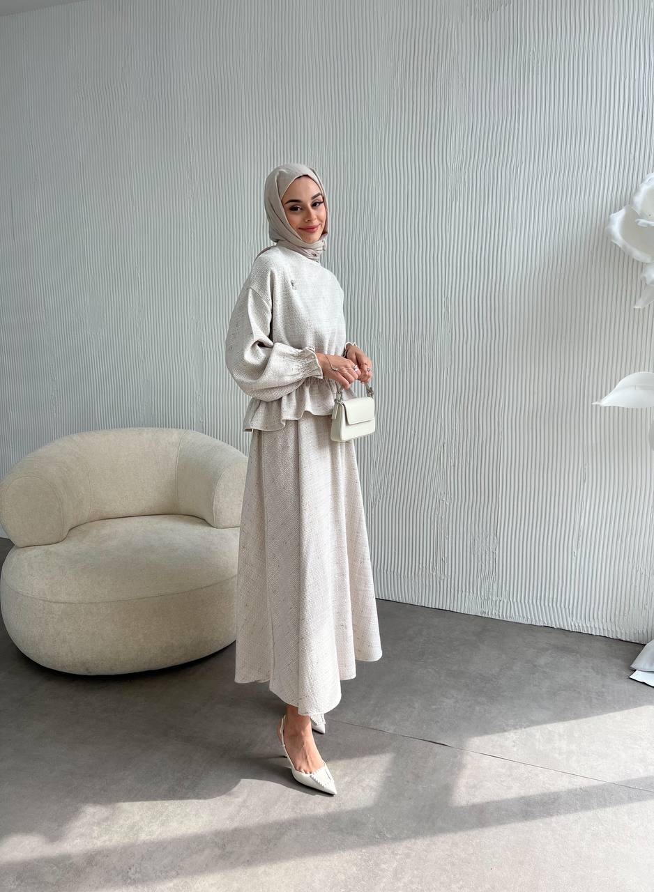 - Material: Gefertigt aus hochwertigem Tweed-Material, das angenehm weich und wärmend ist. Der Stoff bietet nicht nur Komfort, sondern auch eine edle Haptik, die das Outfit zu einem stilvollen Begleiter für viele Anlässe macht.